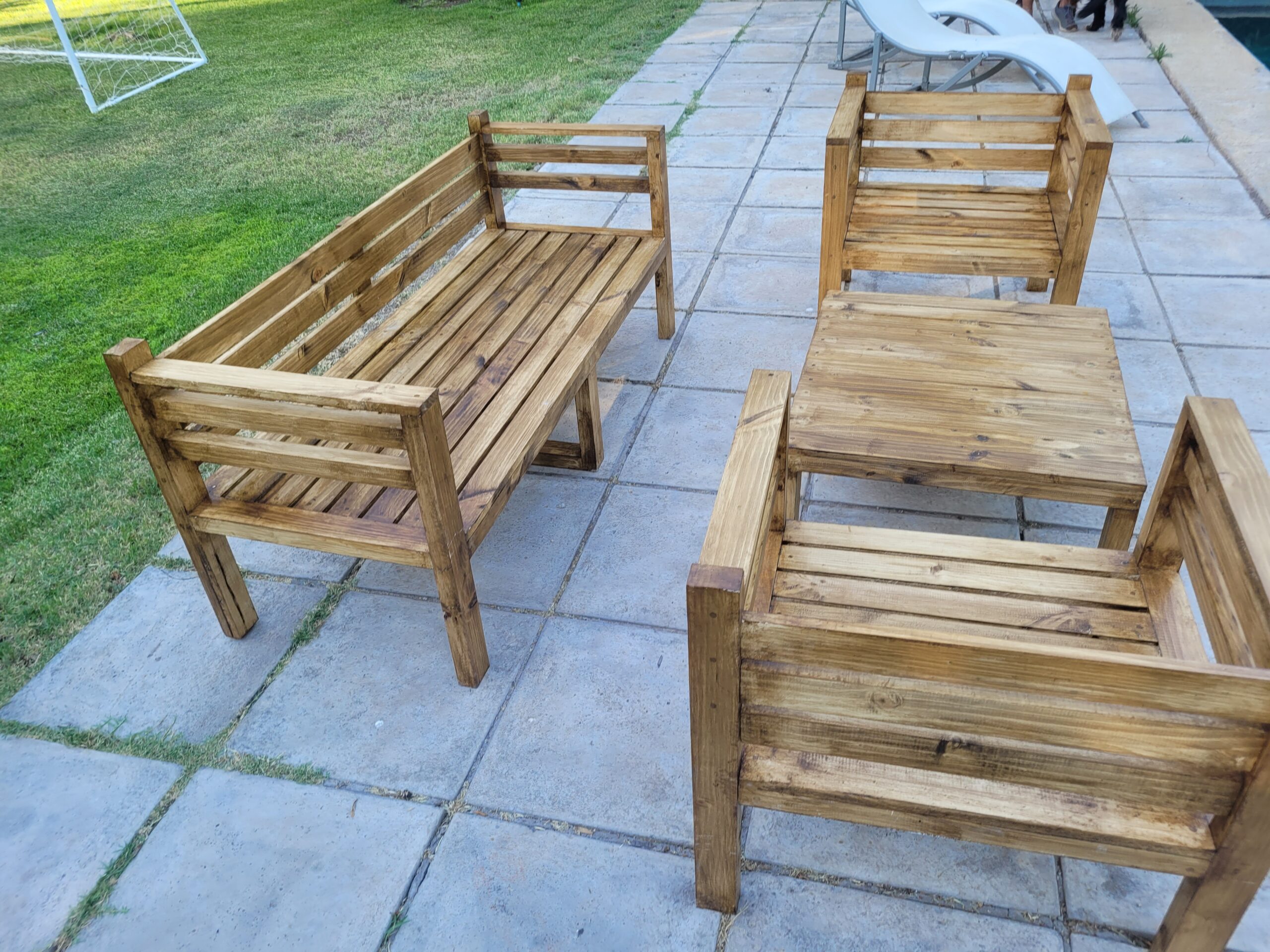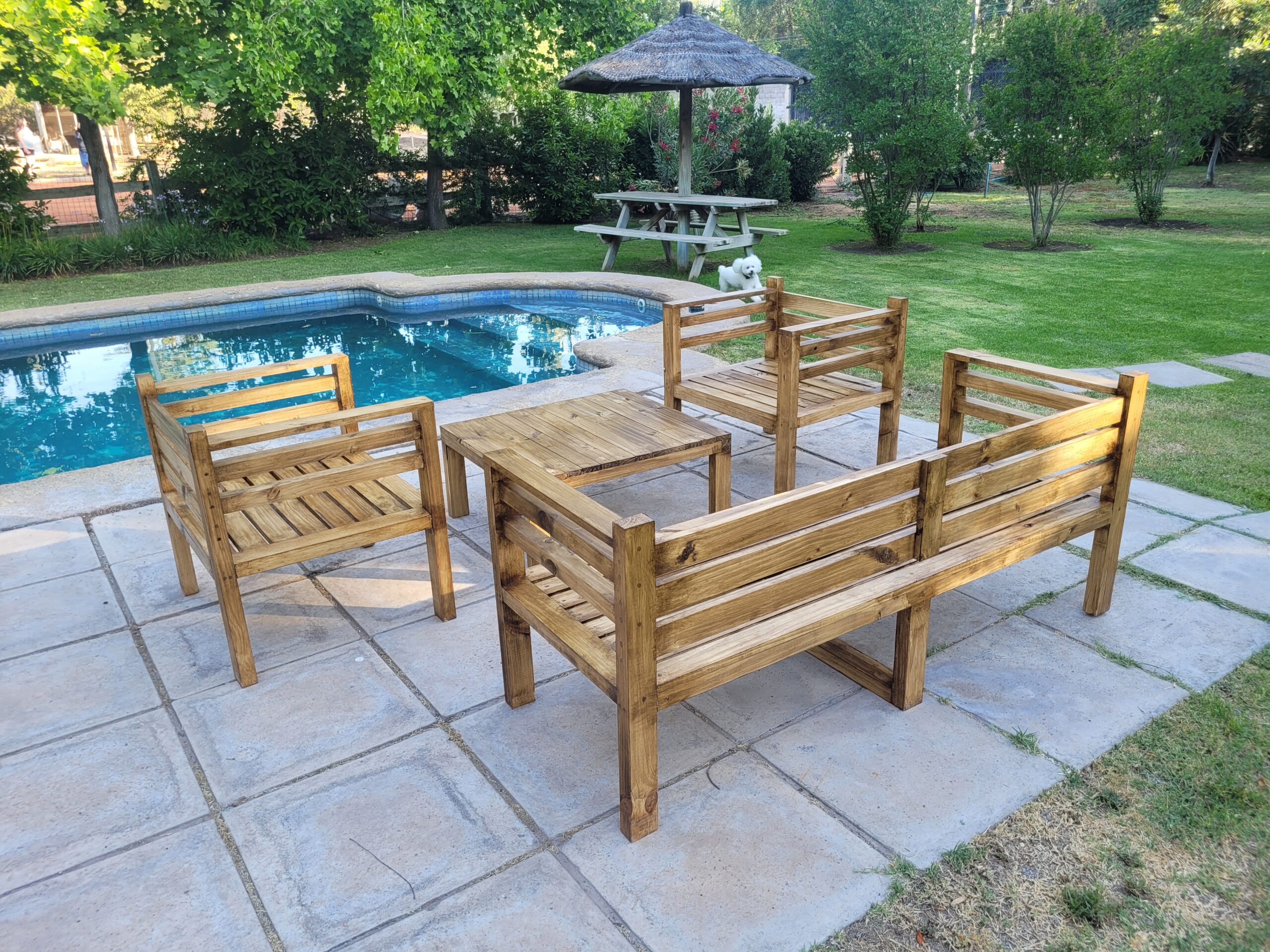 Protección Superior: Cada pieza cuenta con tratamiento especializado contra agua y rayos UV, garantizando su belleza y resistencia ante las condiciones climáticas más exigentes. El acabado en barniz de poliuretano proporciona un terminado profesional que realza la elegancia natural del mueble.