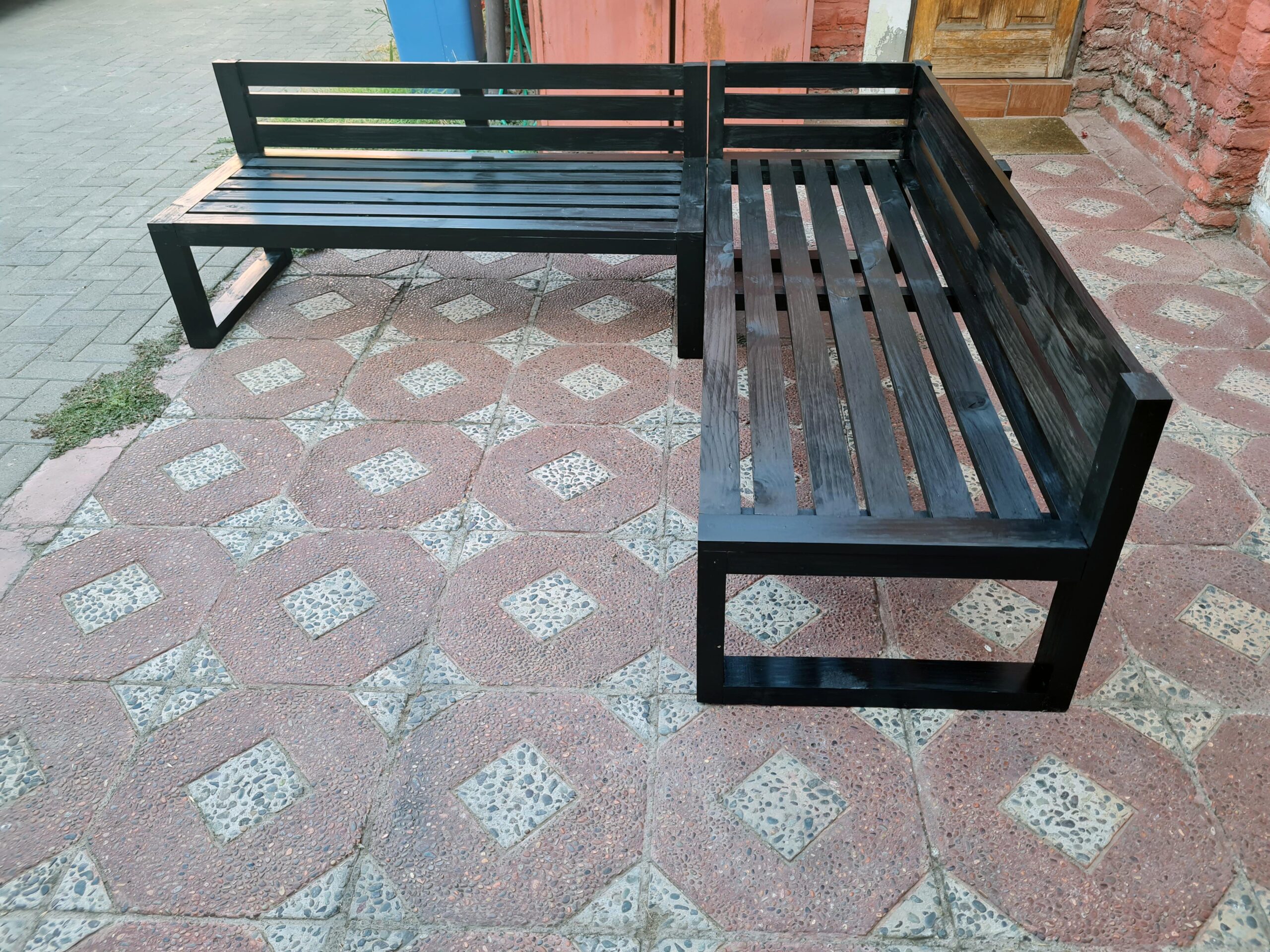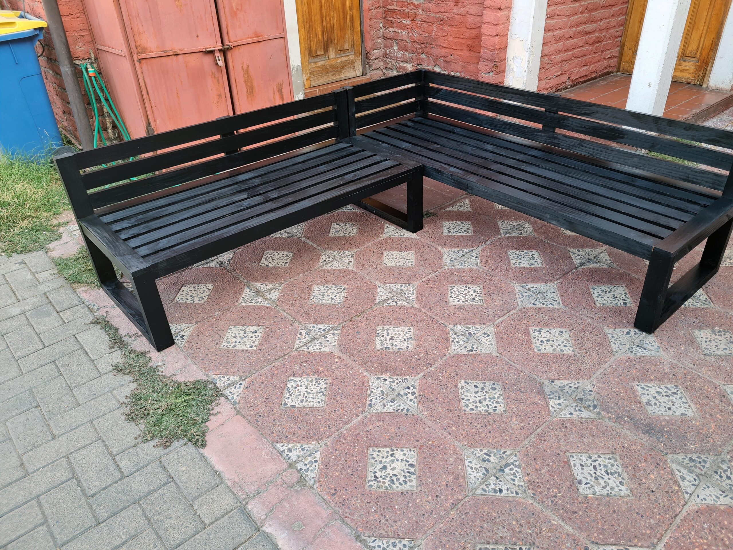 Juego de Terraza Pompeya Alerce | Pino tratado, pintado y vitrificado resistente a agua y Rayos UV | Medidas: 150×50×65 + 100×50×65 cm | Diseño moderno y duradero.
